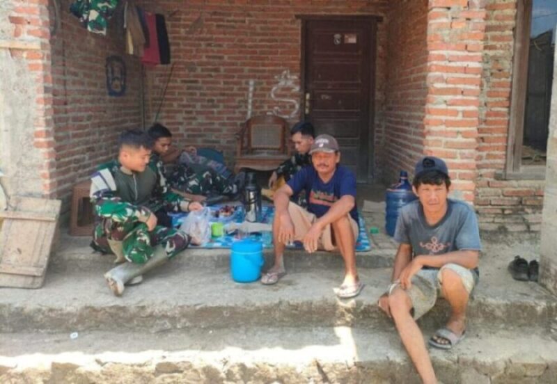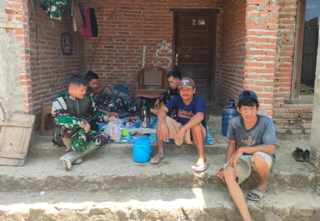 INDRAMAYU, SUARA INDONESIA NEWS |Di sela-sela kesibukan melaksanakan pembangunan rumah warga dalam program TNI Manunggal Membangun Desa (TMMD) ke-126, Praka Leno bersama dua orang anggota Satgas TMMD melaksanakan kegiatan komunikasi sosial (komsos) dengan warga setempat di Blok Siwalan RT 12/RW 04, Desa Longok, Kecamatan Sliyeg, Kabupaten Indramayu. (14/10/25).
