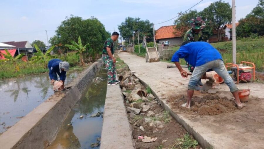 INDRAMAYU, SUARA INDONESIA NEWS | Anggota Satgas TNI Manunggal Membangun Desa (TMMD) ke-126 Kodim 0616/Indramayu terus kebut pengerjaan pembangunan Tembok Penahan Tanah (TPT) yang berlokasi di Blok Sigedang RT 001/RW 001, Desa Longok, Kecamatan Sliyeg, Senin (3/11/2025).