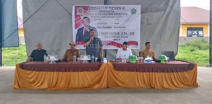 KONAWE, SUARA INDONESIA NEWS | Ketua Dewan Perwakilan Rakyat Daerah (DPRD) Kabupaten Konawe, I Made Asmaya, S.Pd, MM, turun langsung menemui konstituen dalam agenda Reses II Tahun Anggaran 2025 di Desa Olo-Oloho, Kecamatan Uepai, Senin (24/2/2025).