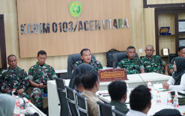 LHOKSEUMAWE, SUARA INDONESIA NEWS |Komandan Kodim 0103/Aceh Utara, Letkol Arh Jamal Dani Arifin, S.Sos., M.M.D.S., mengadakan silaturrahmi sekaligus rapat dengan kepala SPPG dan pemilik dapur MBG di ruang rapat Kodim, Desa Gampong Jawa Lama, Jalan Iskandar Muda, Rabu (1/10/2025). Pertemuan ini membahas pengawasan program MBG (Makanan Bergizi) yang menjadi prioritas Presiden RI Prabowo Subianto.