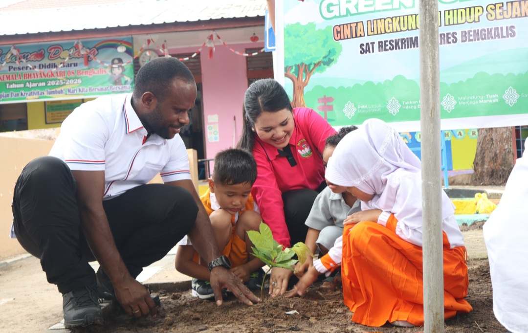 BENGKALIS, SUARA INDONESIA NEWS | Satuan Reserse kriminal (Sat Reskrim) Polres bengkalis melaksanakan kegiatan Green Policing di Taman Kanak-kanak Kemala Bhayangkari Polres Bengkalis, Senin, 27 Oktober 2025 sekira pukul WIB 09.00 sampai selesai.