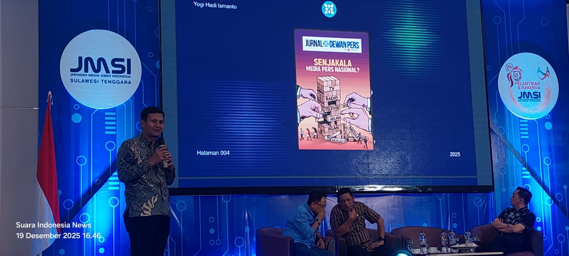 KENDARI, SUARA INDONESIA NEWS | Pengurus Daerah (Pengda) Jaringan Media Siber Indonesia (JMSI) Sulawesi Tenggara (Sultra) periode 2025-2030 sukses menyelenggarakan “JMSI Sultra Talk” di Hotel Claro Kendari, Jumat (19/12/2025).