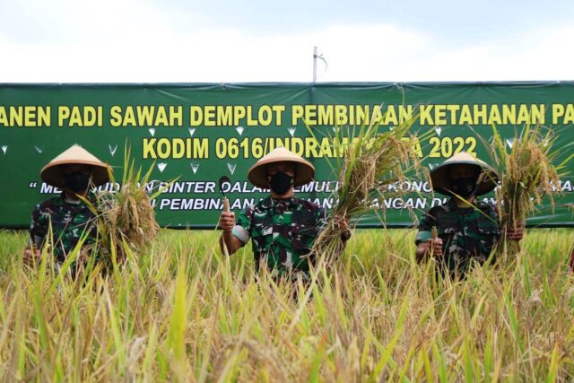 Dandim 0616 Indramayu, Letkol Inf Teguh Wibowo, melalui Kasdim, Mayor Inf Ruhiyat mengatakan, panen raya merupakan ketahanan pangan TNI AD di tengah pandemi Covid-19.