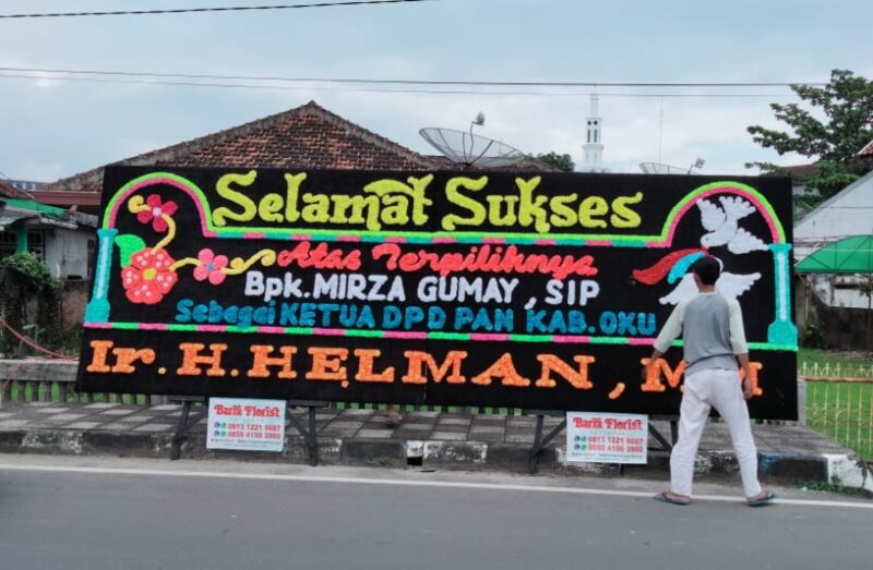 Setidaknya, terlihat ratusan papan bunga sudah terpasang berjejer untuk memberikan ucapan selamat kepada Mirza Gumay, salah satunya papan bunga ucapan selamat dan sukses dari Ir. H. Helman, MM mantan Kepala PU Perkim Kabupaten OKU yang juga memberikan papan bunga ucapan selamat kepada Mirza Gumay yang terpilih kembali menjadi ketua DPD PAN OKU untuk yang ke dua kalinya.
