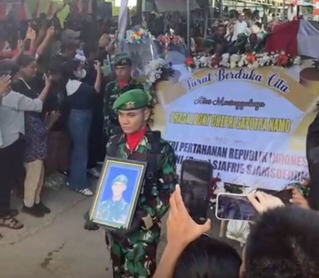 KUPANG-NTT, SUARA INDONESIA NEWS | Upacara pemakaman jenazah Alm. Prada Lucky Chepril Saputra Namo telah dilaksanakan pada hari Sabtu, 9 Agustus 2025, pukul 15.20 WITA di TPU Mapoli (Kapadala-Airnona), Kelurahan Air Nona, Kecamatan Kota Raja, Kota Kupang. Upacara ini dihadiri oleh keluarga, kerabat, serta sejumlah tokoh penting dari lingkungan TNI dan pemerintahan.