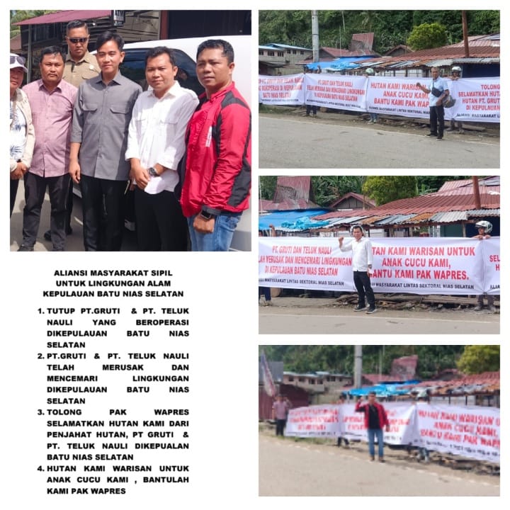 NIAS SELATAN, SUARA INDONESIA NEWS | Kunjungan kerja Wakil Presiden RI, Gibran Rakabuming Raka, di Kabupaten Nias Selatan menjadi momentum penting bagi masyarakat Kepulauan Batu untuk menyampaikan aspirasi. Sejumlah warga yang tergabung dalam Aliansi Masyarakat Sipil Lintas Sektoral membentangkan spanduk berisi surat terbuka terkait penyelamatan hutan, Sabtu (21/12-25).