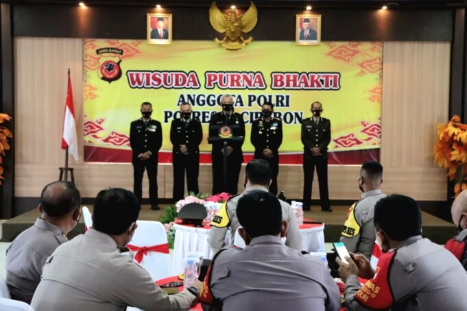 Suara Indonesia News - Kabupaten Cirebon. Jajaran Polresta Cirebon melaksanakan Upacara Wisuda Purna Bhakti Anggota Polri yang pensiun periode 2020 - 2021 bertempat di Lapangan Mapolresta Cirebon, Senin (28/3/2022).