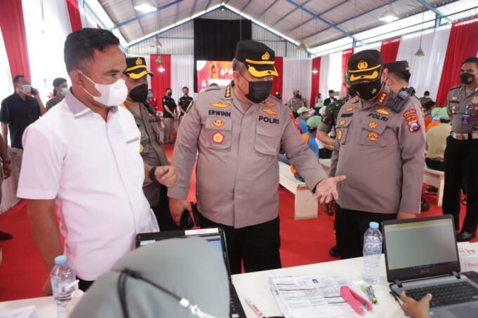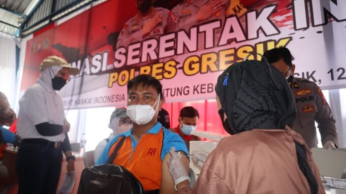 Suara Indonesia News – Gresik. Bersama Jajaran PJU Polda Jatim, Kapolres Gresik AKBP Mochamad Nur Azis meninjau pelaksanaan vaksin booster di PT Nankai Indonesia, Jalan Mayjend Sungkono, Kelurahan Gulomantung, Kecamatan Kebomas, Sabtu(12/3/2022).Jajaran PJU Polda Jatim yang hadir diantaranya Kabid...