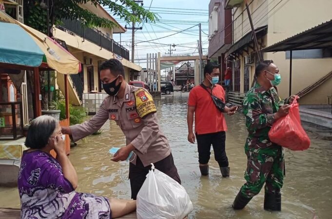 Suara Indonesia News - Gresik. Banjir yang merendam sejumlah wilayah di Kecamatan Driyorejo membuat Polsek Driyorejo bergerak cepat. Pagi ini, anggota Polsek Driyorejo bersama Koramil Driyorejo memberikan bantuan makanan kepada warga, Jum'at (11/03/2022).Petugas berjalan menyusuri banjir mendatangi rumah warga....