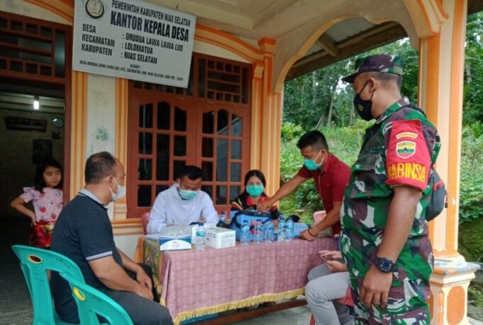 Suara Indonesia News - Nias Selatan. Personil Babinsa Koramil 10/Lolowau Kodim 0213/Nias Sertu Hafit Harianto melaksanakan pendampingan pelaksanaan Kegiatan serbuan Vaksinasi Covid-19 Dosis 1, 2, 3 yang didukung oleh Dinas Kesehatan Kabupaten Nias Selatan bertempat di Desa Orodua Lawa-Lawa...