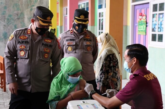 Suara Indonesia news - Gresik. Kunjungan Kapolres Gresik AKBP Mochamad Nur Azis, SH, SIK, MSi., beserta rombongan dalam rangka Pplaksanaan giat Vidcon Vaksinasi secara serentak di Mi Sabilul Mubtadin Desa Randegansari Kec. Driyorejo Kab. Gresik dengan tetap mematuhi protokol kesehatan...