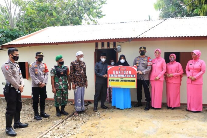 Suara Indonesia News – Lhokseumawe. Bhakti Bahyangkari untuk negeri, Kapolres Lhokseumawe AKBP Eko Hartanto SIK MH bersama Ketua Bhayangkari Cabang Lhokseumawe, Ny Lily Eko Hartanto menyerahkan kunci rumah yang telah selesai direnovasi kepada warga kurang mampu di Gampong Ulee...