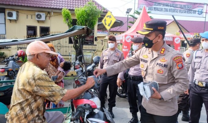 Suara Indonesia News - Tanjungbalai. Kapolres Tanjungbalai AKBP Triyadi memimpin langsung pembagian masker gratis kepada masyarakat yang melintas di Mako Polres Tanjungbalai, Selasa tanggal 15 Februari 2022 Pukul 08.45 Wib, seluruh pengendara yang tampak tak memakai masker dihentikan petugas...