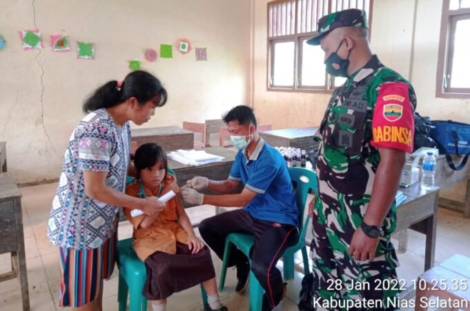 Suara Indonesia News - Nias Selatan. Personil Babinsa Koramil 10/ L olowau Kodim 0213 / Nias Sertu Hafit dan Koptu S. Laia monitoring pelaksanaan serbuan Vaksin Covid-19 kepada Anak usia 6-11 Tahun dengan sasaran 83 Orang yang dilaksanakan oleh...