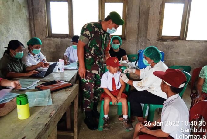 Suara Indonesia News - Nias Selatan. Personil Babinsa Koramil 10 / Lolowau Kodim 0213 / Nias Serda Mediano Mendrofa dan koptu S. Laia monitoring pelaksanaan serbuan Vaksin Covid-19 kepada Anak usia 6-11 Tahun bertempat di SDN Hilimaera yang dilaksanakan...