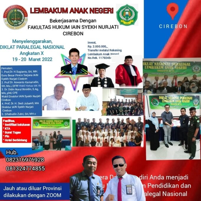 Suara Indonesia News - Kabupaten Cirebon. Lembaga Bantuan Hukum Anak Negeri (Lembakum Anak Negeri) bekerja sama dengan Fakultas Hukum IAIN Syech Nurjati Cirebon mengadakan Diklat Pendidikan Paralegal Nasional angkatan ke X kegiatan tersebut di laksanakan pada tanggal, 19-20 Maret...