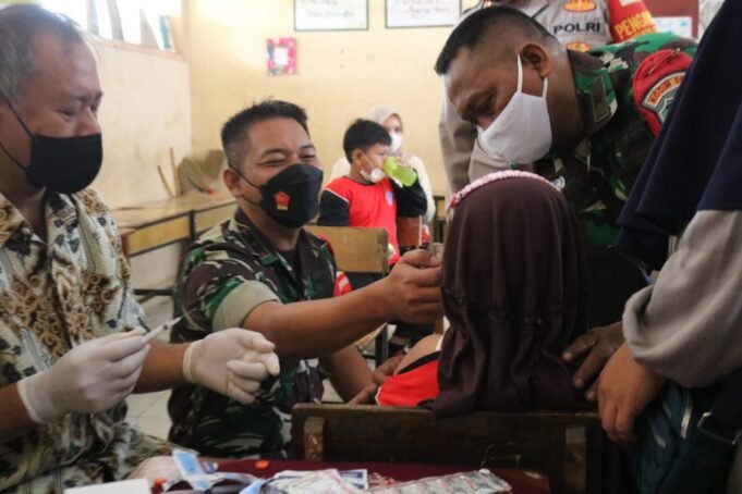 Suara Indonesia News - Indramayu. Komadan Kodim (Dandim) 0616/Indramayu, Letkol Inf Teguh Wibowo S.Sos, kembali melakukan peninjauan serbuan vaksinasi yang diperuntukkan bagi anak-anak berusia 6-11 tahun.Kali ini kegiatan vaksinasi dilaksanakan di SDN 1 Pawidean, Desa Pawidean, Kecamatan Jatibarang, Kabupaten...