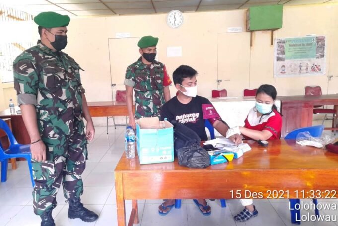 Suara Indonesia News - Nias Selatan. Personil Babinsa Koramil 10/Lolowau Kodim 0213/Nias Pelda Radiman dan sertu Hs. Simatupang menghadiri pelaksanaan Kegiatan serbuan Vaksinasi Covid-19 tahap ke I dan 2 target 71 Orang, sumber Vaksin dari Dinas Kesehatan Kabupaten Nias...