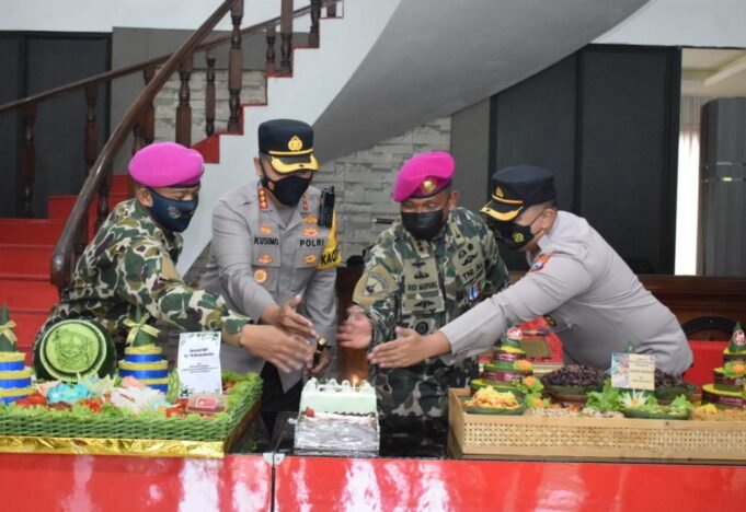 Suara Indonesia News - Sidoarjo. Kapolresta Sidoarjo Kombes Pol. Kusumo Wahyu Bintoro, didampingi Waka Polresta Sidoarjo AKBP Deny Agung Andriana dan pejabat utama, Senin (15/11/2021) pagi, memberikan kejutan Komandan Brigif 2 Marinir Kolonel Marinir Rudi Harto Marpaung dan staf.Kejutan...