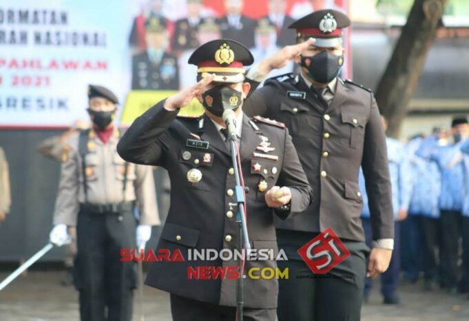 Suara Indonesia News - Gresik. Kapolres Gresik AKBP Mochamad Nur Azis S.H., S.I.K., M.Si., memimpin upacara peringatan Hari Pahlawan yang digelar di makam pahlawan didampingi Dandim 0817 dan diikuti Forkopinda beserta undangan di jalan pahlawan Gresik, pada Rabu (10/11/2021).Upacara...