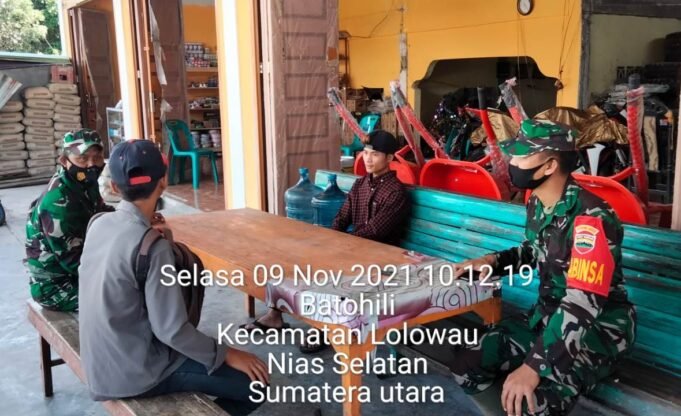 Suara Indonesia News - Nias Selatan. Demi memutus penularan Virus Personil Babinsa Koramil 10/Lolowa'u Kodim 0213/ Nias Serka J. Aritonang dan Pratu C. Laoli melaksanakan kegiatan Komumikasi Sosial (Kosmos) tentang Protokol Kesehatan kepada Masyarakakat di Desa Botohili Kecamatan Lolowau...