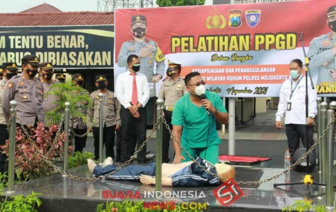 Suara Indonesia News - Mojokerto. Polresta Mojokerto menggelar pelatihan Penanganan Pertama Gawat Darurat (PPGD) bertempat di Lapangan Apel Patih gajah mada Mapolresta Mojokerto, Senin (8/11/2021) Pagi.Kegiatan yang diikuti pejabat utama, Anggota Polri, ASN Polri dan Polsek jajaran Polresta Mojokerto...