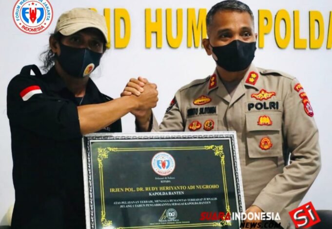 Suara Indonesia News - Serang. Kapolda Banten IJP Dr. Rudy Heriyanto menerima piagam penghargaan dari Forum Wartawan Jakarta (FWJ) Indonesia. Piagam penghargaan tersebut sebagai bentuk apresiasi kepada Kapolda Banten atas pelayanan terbaik menjaga humanitas terhadap jurnalis jelang 1 tahun...