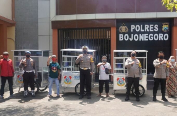 Suara Indonesia News - Bojonegoro. Kapolres Bojonegoro Ajun Komisaris Besar Polisi (AKBP) EG Pandia memberikan modal usaha berupa gerobak untuk berwirausaha kepada warga yang pekerjaannya terdampak pandemi Covid-19 di wilayah Kabupaten Bojonegoro. Kegiatan pemberian gerobak dilaksanakan di halaman Mapolres...