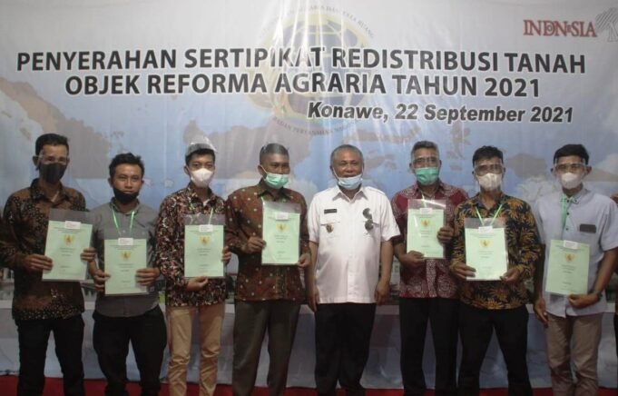 Suara Indonesia News - Konawe. Bupati Konawe, Kery Saiful Konggoasa mengikuti acara penyerahan sertipikat redistribusi tanah objek reforma agraria tahun 2021 di aula kantor pemda konawe – Sulawesi Tenggara. Acara penyerahan sertipikat juga diikuti secara live melalui konferensi video...
