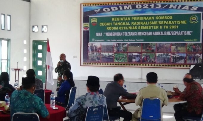 Suara Indonesia News – Gunungsitoli. Dandim 0213/Nias Letnan Kolonel Inf Martky Jaya Perangin-Angin, melaksanakan kegiatan pembinaan Komunikasi Sosial (Komsos) Cegah Tangkal Radikalisme/Separatisme tahun 2021 dengan mengusung tema : “ Meneguhkan Toleransi Mencegah Radikalisme / Separatisme ”. Kamis, 16/9/2021.Dandim 0213/Nias...