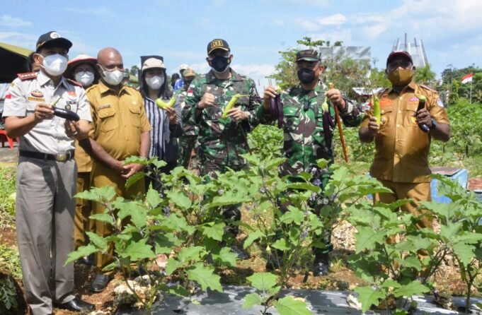 Suara Indonesia News - Jayapura. Komandan Korem (Danrem) 172/PWY Brigjen TNI Izak Pangemanan bersama Dansatgas Pamtas RI-PNG Yonif 131/BRS dan masyarakat perbatasan melakukan panen raya perdana di Kebun Braja Sakti, Skouw Wutung, Distrik Muaratami, Kota Jayapura, Senin (30/8/2021).Kebun Braja...