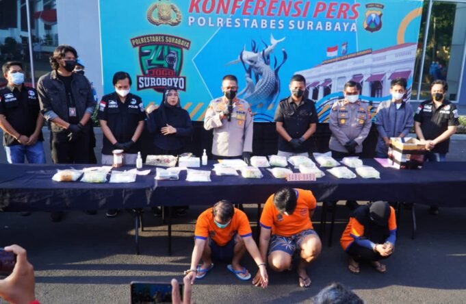 Suara Indonesia News - Surabaya. Satrenarkoba Polrestabes Surabaya kembali berhasil mengungkap peredaran narkoba di wilayah Jawa Timur jenis sabu-sabu seberat ± 13,4 Kg dari 3 orang tersangka.Penangkapan terhadap tersangka berawal dari laporan masyarakat pada tanggal 21 Juli 2021 yang...