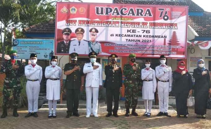 Suara Indonesia News - Gresik. Pelaksanaan Upacara Proklamasi Kemerdekaan Republik Indonesia ke 76 yang digelar terbatas, dilaksanakan di lapangan Kec. Kedamean, Selasa (17/8/2021) pagi.Camat Kedamean Arifin SE. MM. bertindak sebagai inspektur upacara (Irup) memperingati Hari Ulang Tahun (HUT) ke-76...