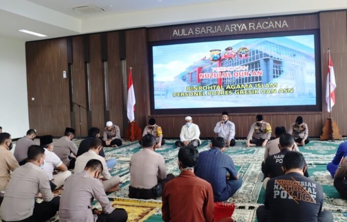 Suara Indonesia News - Gresik. Memasuki Bulan Ramadhan hari ke-24 Polres Gresik peringati Nuzulul Qur'an pada Binrohtal, Kamis (6/5/2021).Peringatan Nuzulul Qur'an 17 Ramadhan 1442 Hijriah digelar di Aula Sarja Arya Racana Polres Gresik.Diikuti Kapolres Gresik AKBP Arief Fitrianto, S.H.,...