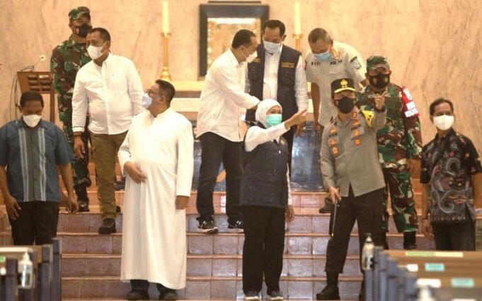 Suara Indonesia News - Surabaya. Forum Komunikasi Pimpinan Daerah (Forkopimda) Jatim mengecek pengamanan di gereja untuk menyambut Paskah, dan memberikan bantuan berupa peralatan Protokol Kesehatan (Prokes), di gereja Katedral (Hati Kudus) Jalan Polisi Istimewa, Surabaya, pada Jum’at (2/4/2021).Gubernur Jatim...
