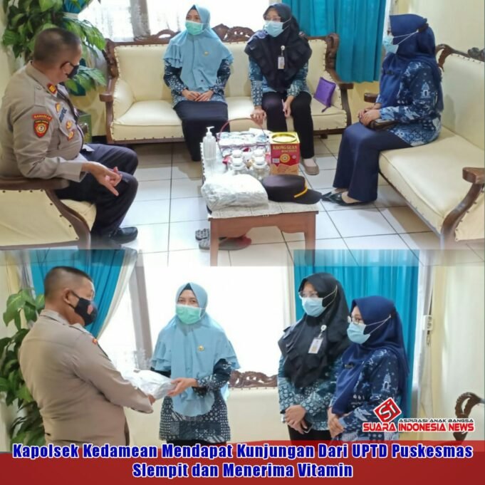 Suara Indonesia News - Gresik. Kapolsek Kedamean AKP H. Ali Syaiful S.H. M.H. menerima kunjungan Kepala UPTD Puskesmas Slempit bersama staf. Kedatangan tersebut dalam rangka memberikan vitamin kepada jajaran personil Polsek Kedamean. Kamis (25/3/2021).Kesempatan baik ini, disambut oleh AKP...
