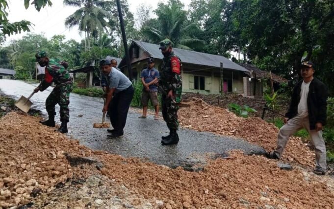 Suara Indonesia News - Nias Selatan. Babinsa Koramil 10/Lolowau Kodim 0213/Nias Sertu Edi Junaidi, Koptu Ditoyono F. Awaluddin bersama Camat Lolomatua dan Tokoh Masyarakat melaksanakan Kegiatan Gotongroyong perbaikan jalan yang rusak di Desa Lawa-Lawa Luo menuju Kecamatan Lolomatua Kabupaten...