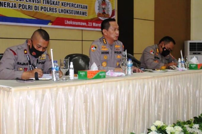 Suara Indonesia News - Lhokseumawe. Tim Puslitbang Polri gelar FGD dan Indefth Interview dalam rangka penelitian dan supervisi tingkat kepercayaan masyarakat terhadap kinerja Polri di gedung wirasatya Polres Lhokseumawe, selasa (23/03/2021) pagi.Acara tersebut dihadiri tim supervisi dan peneliti Puslitbang...