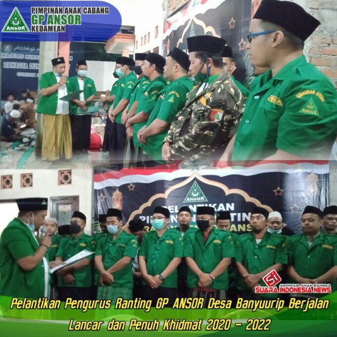 Suara Indonesia News - Gresik. Setelah hampir satu tahun dilaksanakannya Rapat Anggota, Pimpinan Anak Ranting Gerakan Pemuda (GP) Ansor Desa Banyuurip Kec. Kedamean - Gresik, akhirnya dilantik.Acara pelantikan tersebut dipimpin langsung oleh Pimpinan Cabang GP Ansor Gresik, bertempat di...