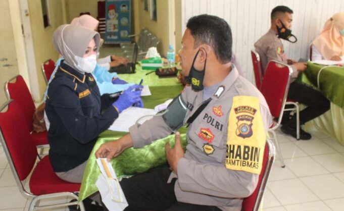 Suara Indonesia News - Lhokseumawe. Ratusan anggota Polri dan aparatur sipil negara (ASN) yang bertugas di Polres Lhokseumawe, Aceh, menjalani penyuntikan atau vaksinasi vaksin COVID-19 tahap pertama, Jumat (12/3/2021).Vaksinasi dipusatkan di Klinik Kesehatan Polres Lhokseumawe di Lhokseumawe, Jumat. Vaksinasi...