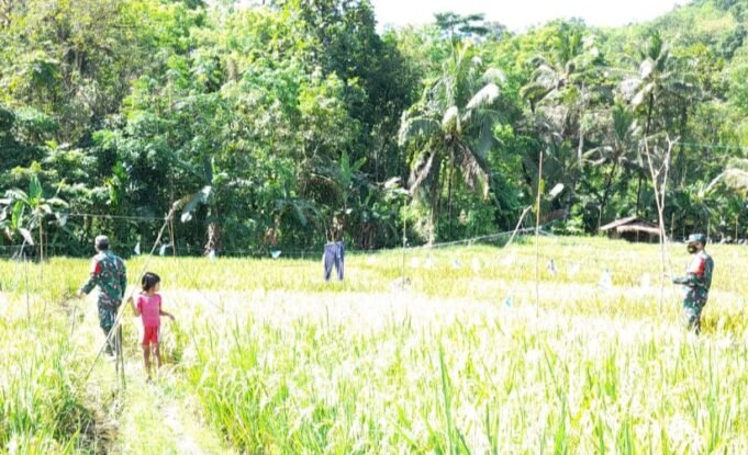Suara Indonesia News - Nias Selatan. Babinsa Koramil 10/Lolowau Kodim 0213/Nias Sertu Hs.Simatupang dan Pratu Karya C.Laoli,bv bersama Timnya Melaksanakan Pendampingan Kepada Masyarakat pada lahan Kelompok Tani persawahan Poktan Mandiri seluas 1,3 Ha. dengan kegiatan pengusiran Hama burung di...