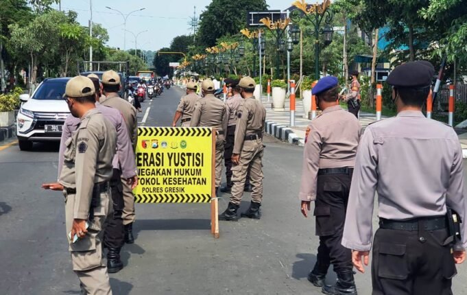 Suara Indonesia News – Gresik. Cegah penyebaran dan penularan Covid 19, serta dalam rangka pengawasan PPKM Mikro, Polres Gresik bersama instansi terkait gelar operasi yustisi penegakan disiplin protokol kesehatan di depan Kantor Pemkab jl. Dr.Wahidin Kecamatan Kebomas Kabupaten Gresik...