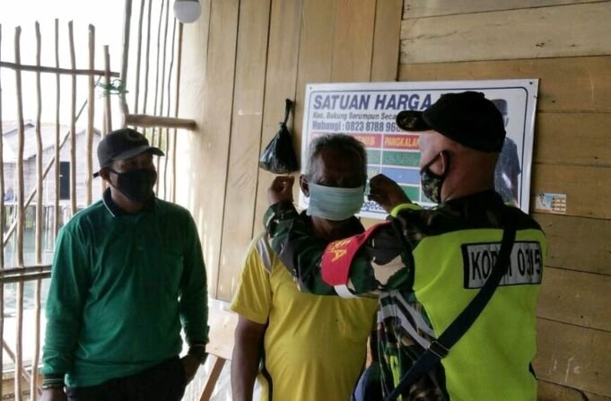 Suara Indonesia News - Lingga Kepri. Menegakan disiplin dan mematuhi protokol kesehatan, Babinsa Tanjung Kelit, Koramil 06 Senayang Kodim 0315 / Bintan Serda Hp Hutagalung, menegur dan memberikan memberikan nasehat kepada salah satu warga yang tidak menggunakan masker, Sabtu...