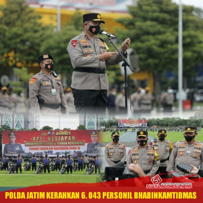 Suara Indonesia News - Surabaya. Apel gelar pasukan dipimpin oleh Wakapolda Jawa Timur Brigjen Pol Slamet Hadi Supraptoyo, pada Kamis (11/2/2021) di lapangan Mapolda Jatim. Untuk membantu melaksanakan tracer dan Vaksinator Covid-19 di Jawa Timur.Sebanyak 6.043 personil Bhabinkamtibmas diturunkan,...
