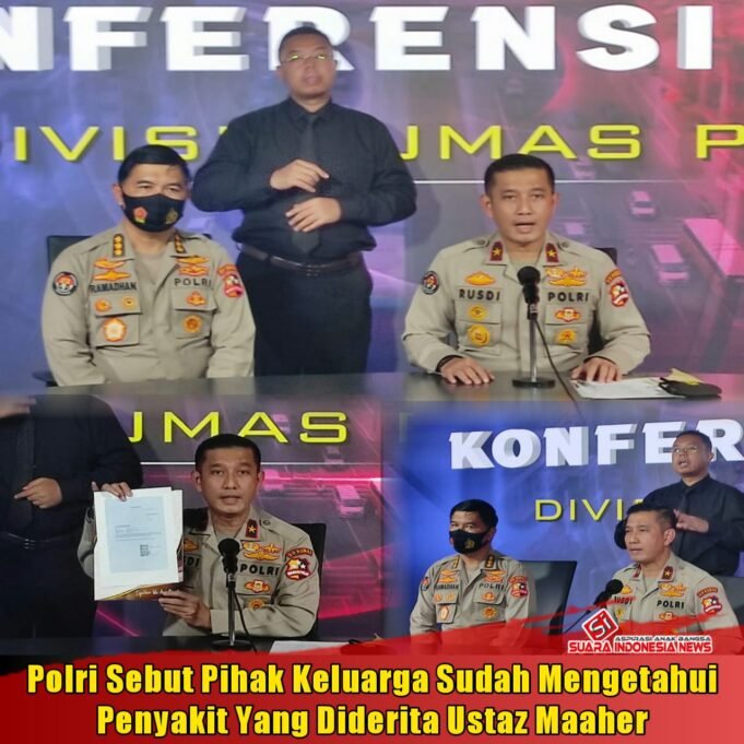 Suara Indonesia News - Jakarta. Polri menyatakan bahwa pihak keluarga sudah mengetahui jenis penyakit yang diderita oleh Soni Eranata atau Ustaz Maaher At-Thuwailibi, saat meninggal dunia di Rutan Salemba cabang Bareskrim Polri."Dan yang menjadi catatan kami bahwa penyakit yang...