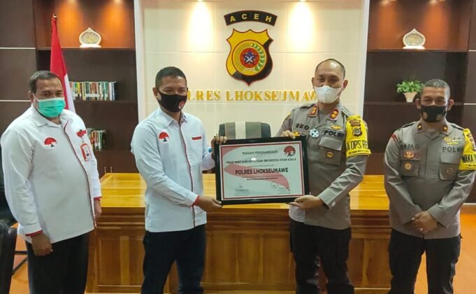 Suara Indonesia News - Lhokseumawe. Kapolres Lhokseumawe AKBP Eko Hartanto, S.I.K, M.H menerima piagam penghargaan dari lembaga Pusat Riset Ilmu Kepolisian Universitas Syiah Kuala di Mapolres Lhokseumawe, Jum'at (29/01/2021).Tampak penyerahan piagam penghargaan tersebut diterima langsung oleh Kapolres Lhokseumawe dari...