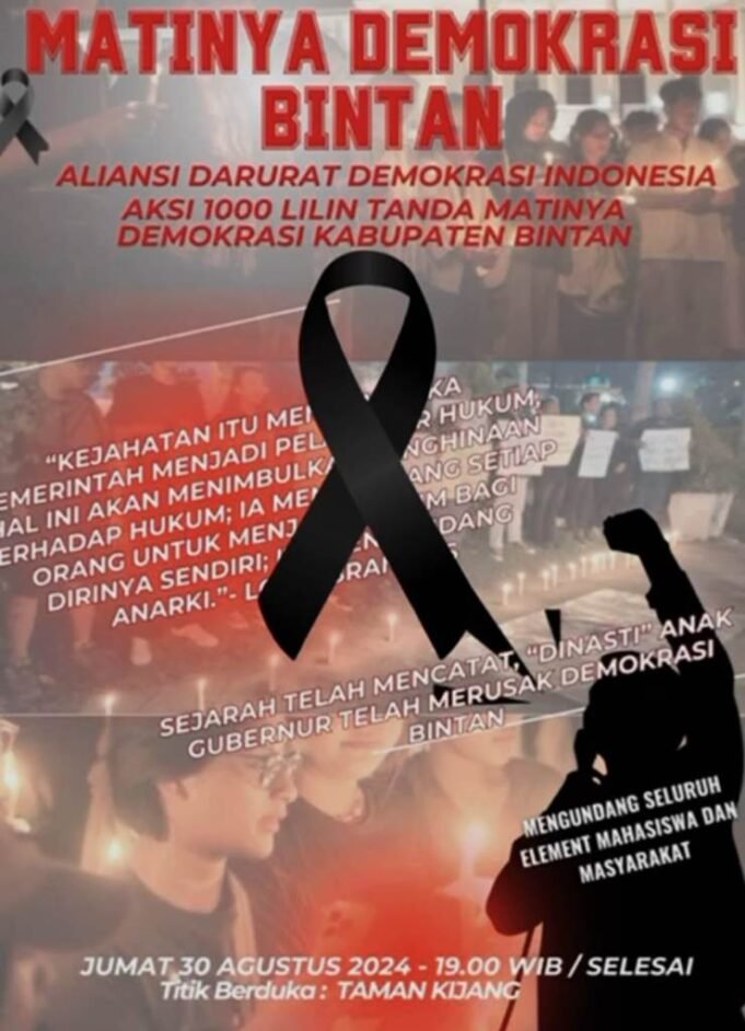 Suara Indonesia News – Bintan. Matinya pesta demokrasi Bintan tahun2024, Pemilihan Bupati dan Wakil Bupati Kabupaten Bintan tidak semeriah sebelumnya, yang penuh dengan atribut partai dan kampanye dari kota sampai ke pelosok pesisir pulau. namun tidak untuk tahun ini...