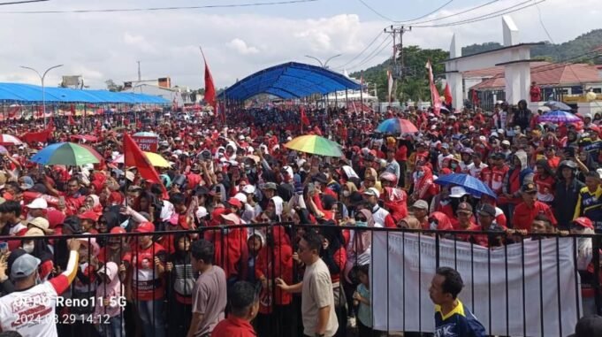 Suara Indonesia News - Konawe. Ribuan masa dari berbagai kalangan di Kabupaten Konawe yang tersebar di semua kecamatan hadiri deklarasi Pasangan Calon Rusdianto - Fachry Pahlevi Konggoasa (RD-FPK) di Inolobunggabei Centeral Park (ICP) Unaaha, Kamis, (29/8/2024).Calon Wakil Bupati Konawe...