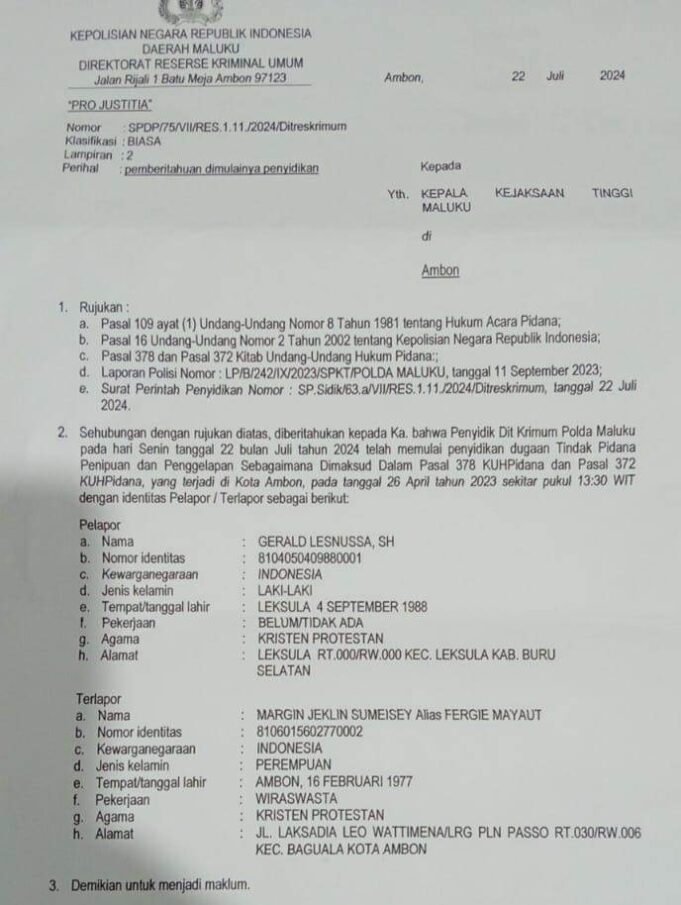 Suara Indonesia News - Jakarta. Dinilai merusak bisa nama instasi Polri, Ketua Umum Setya Kita Pancasila (SKP) Andre Sumual, meminta dugaan penipuan yang dilakukan seorang Residivis Wanita bernama Margin Jaklyn Sumesey alias Fergie Mayaut diusut oleh kepolisian. Dimana indikasi...