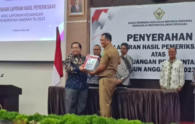 Suara Indonesia News - Kendari. Badan Pemeriksa Keuangan (BPK) Perwakilan Provinsi Sulawesi Tenggara (Sultra) telah menyerahkan Laporan Hasil Pemeriksaan (LHP) atas Laporan Keuangan Pemerintah Daerah Tahun 2023 kepada Pemerintah Kabupaten Konawe di kantor BPK Sultra di Kota Kendari, Selasa...